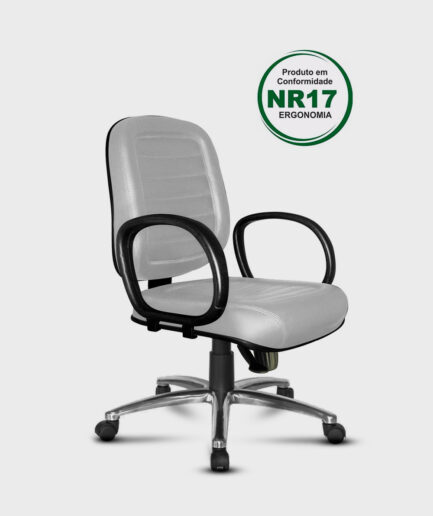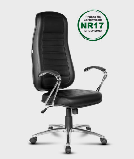 Poltrona giratória Presidente Tescaro com base relax alumínio e braço cromado