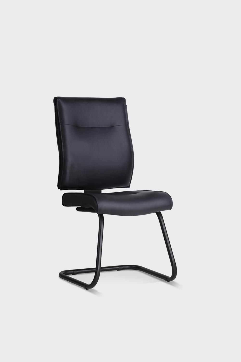 - Base fixa tipo “S” em aço tubular redondo com pintura texturizada preta e sapatas deslizantes.
