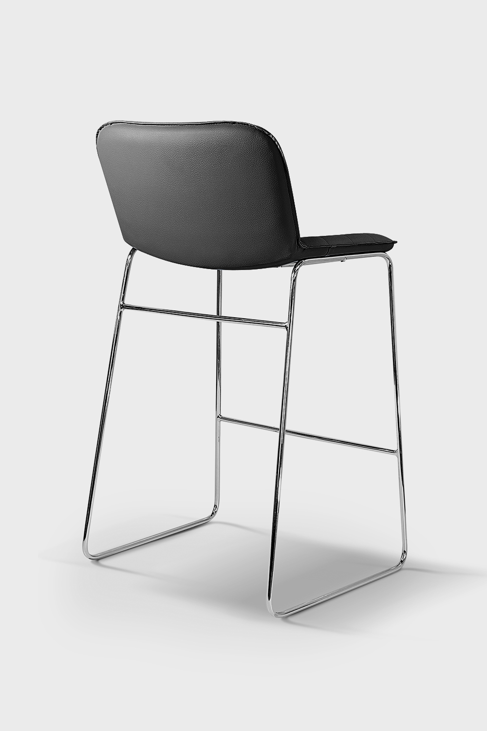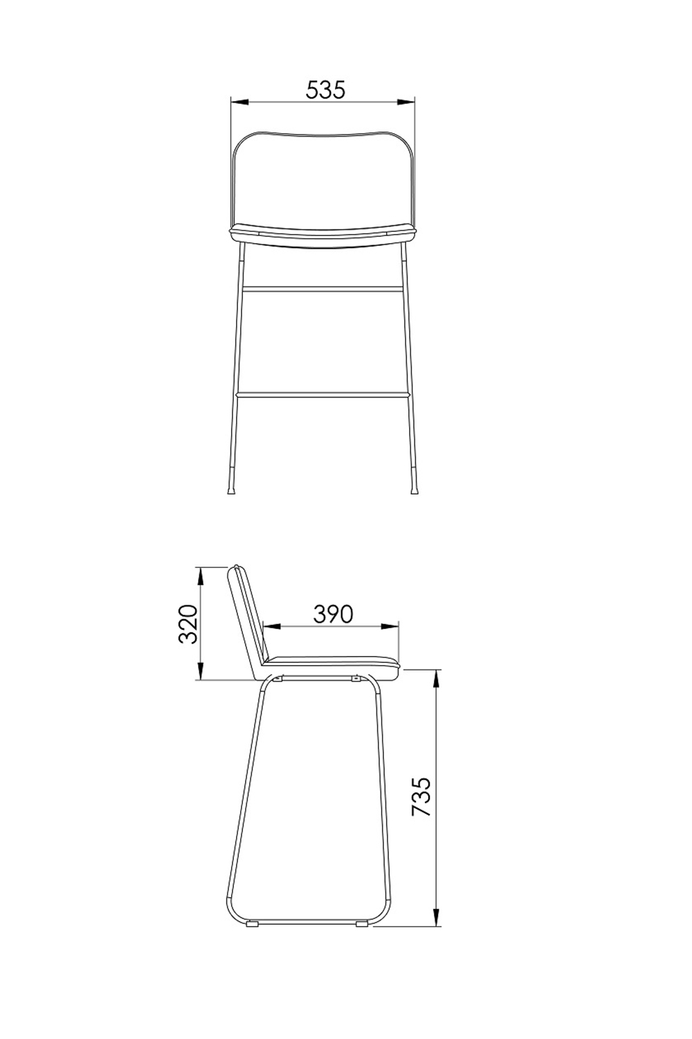 - Encosto com espaldar baixo em madeira, estofado em espuma laminada D26;
