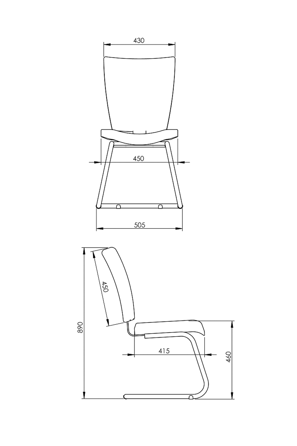 • Base fixa tipo “S” em aço tubular redondo com pintura texturizada preta e sapatas deslizantes.