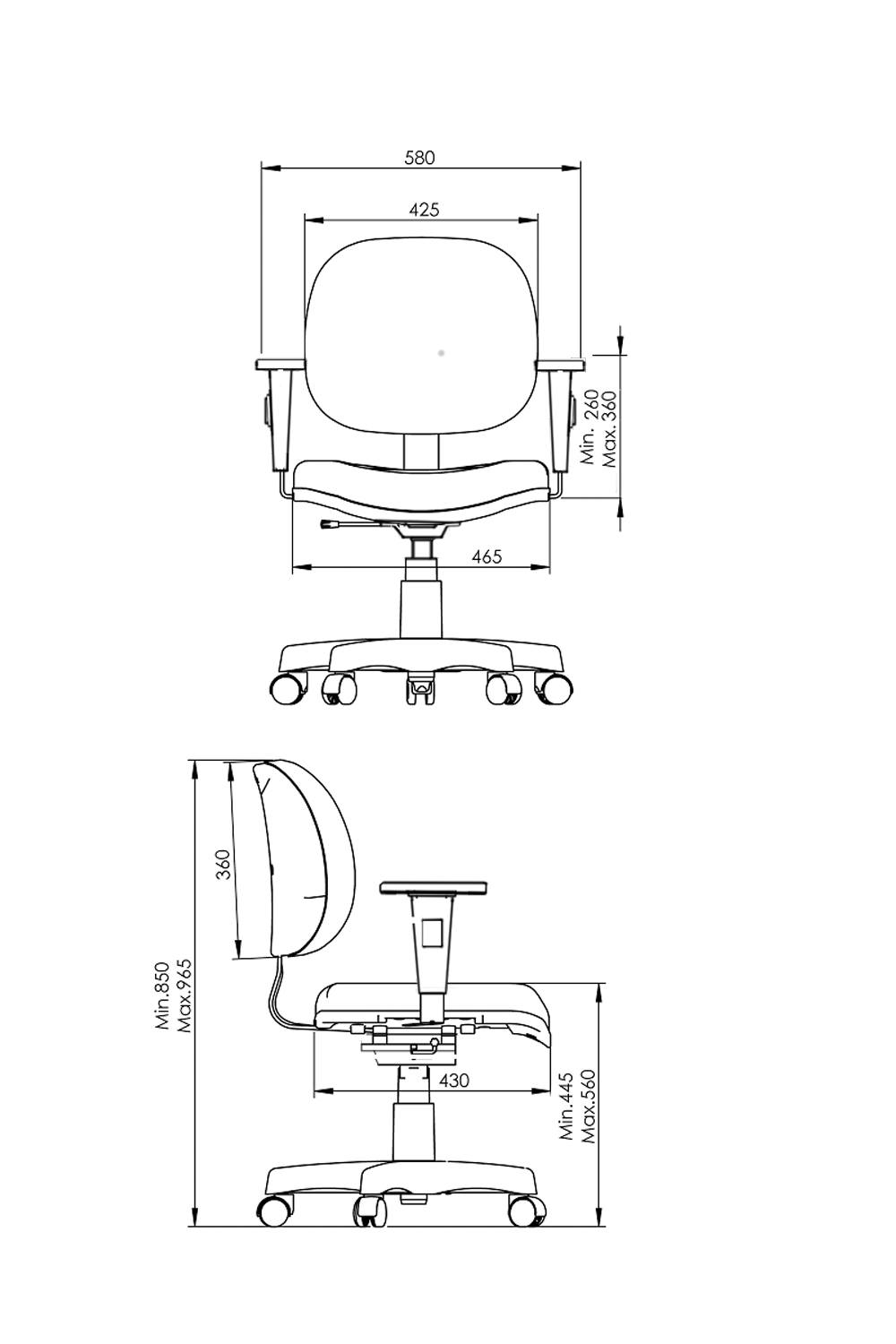 • Encosto baixo em madeira com capa injetada em polipropileno e estofado em espuma injetada D45.