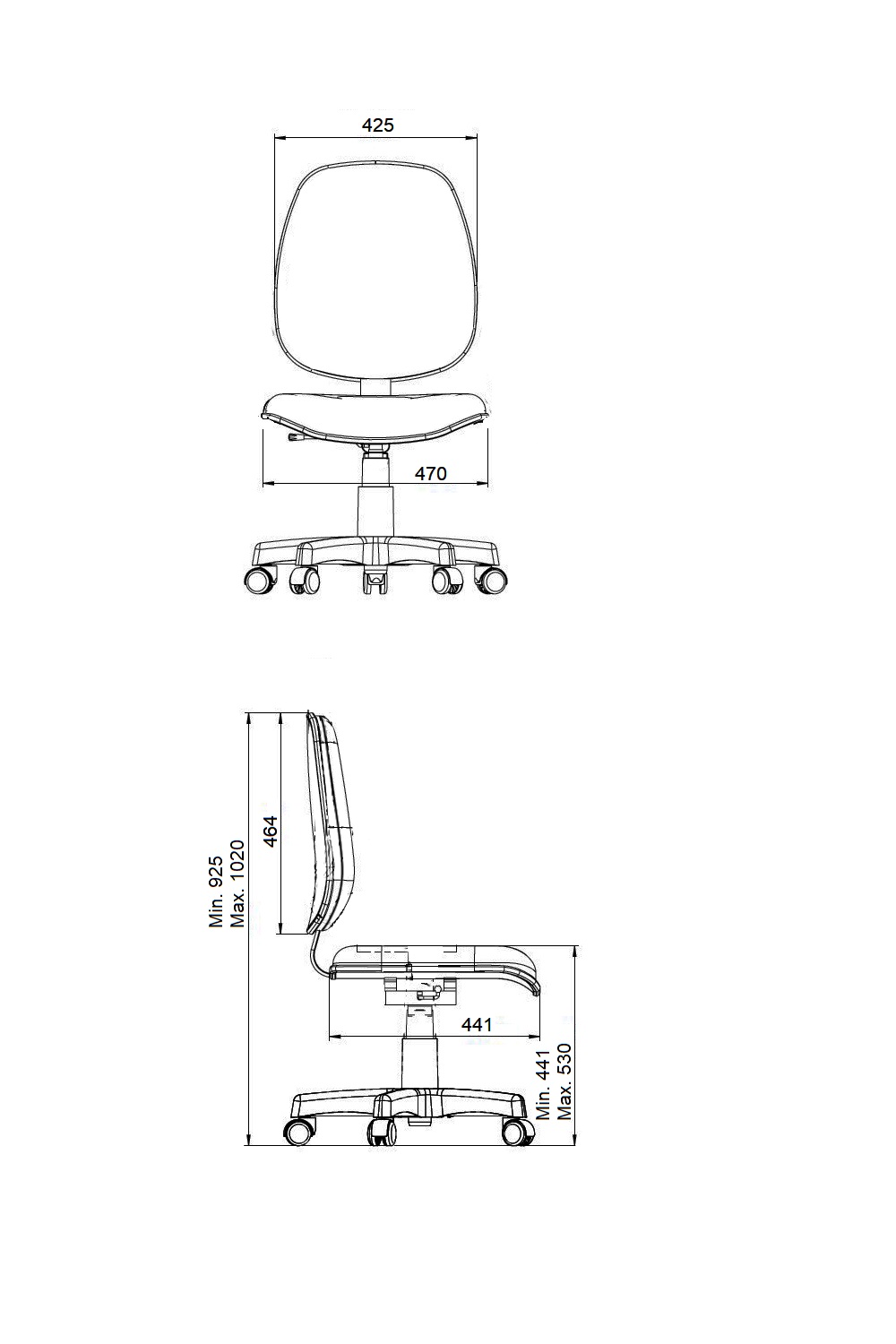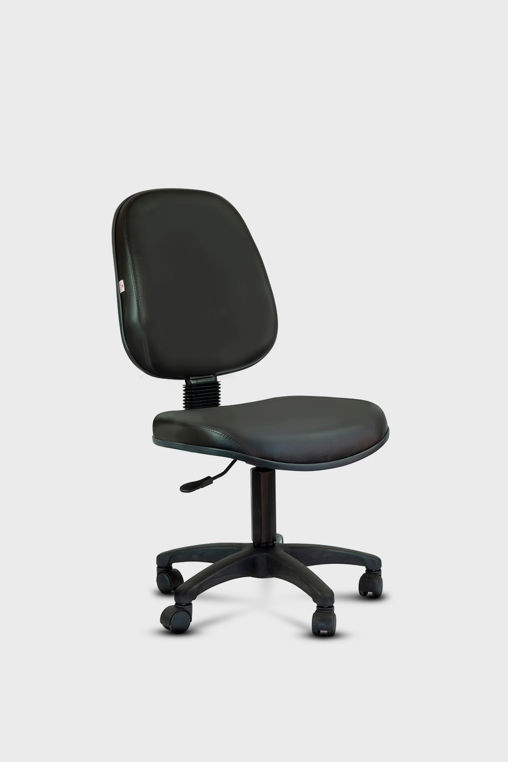 - Encosto médio em madeira, com acabamento em PVC e estofado em espuma injetada D45.