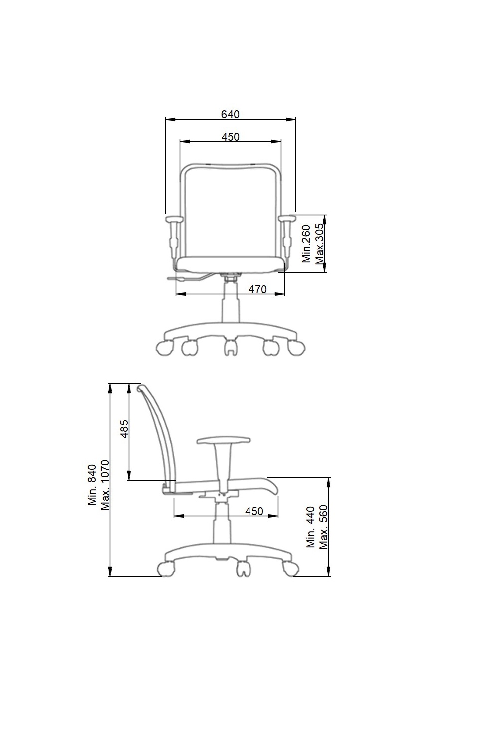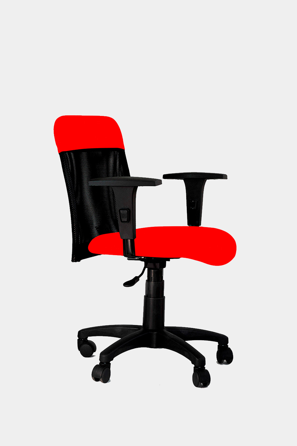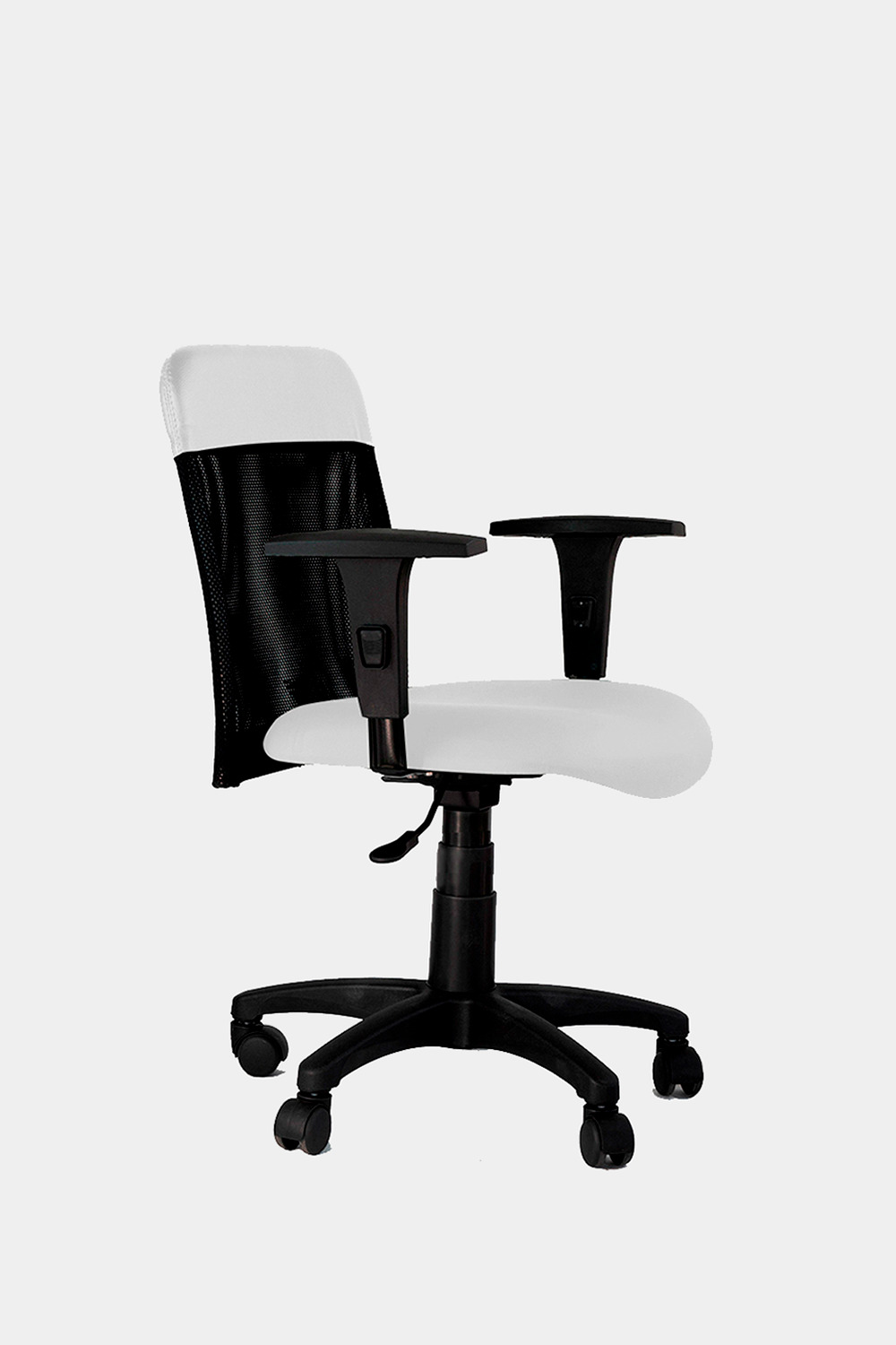 - Encosto baixo com estrutura metálica em aço tubular, revestido em tela de poliéster;