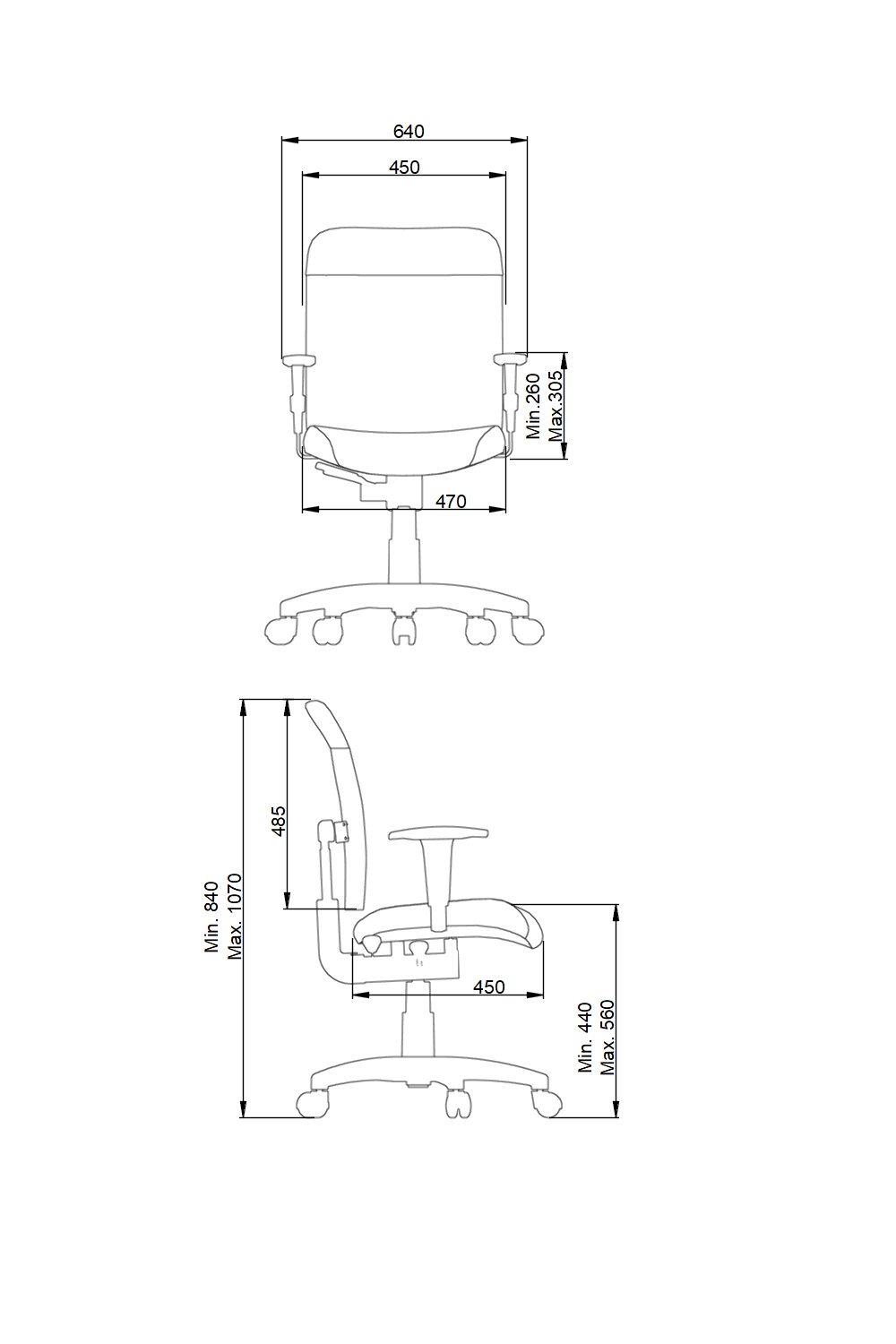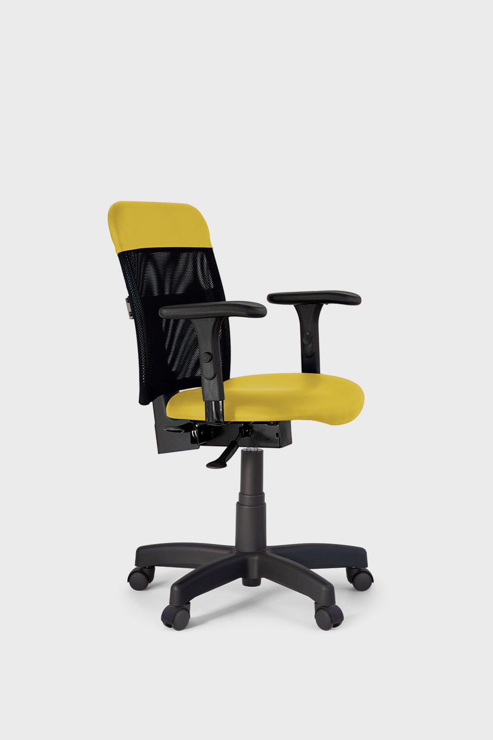 • Encosto baixo com estrutura metálica em aço tubular, revestido em tela de poliéster;