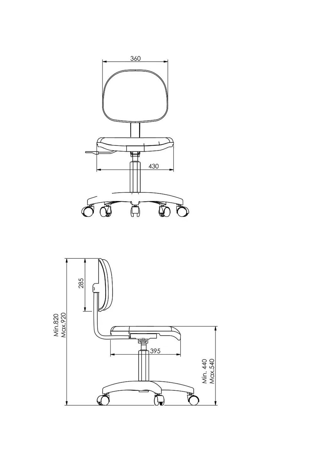- Encosto baixo em madeira com capa injetada em polipropileno e estofado em espuma injetada D45.