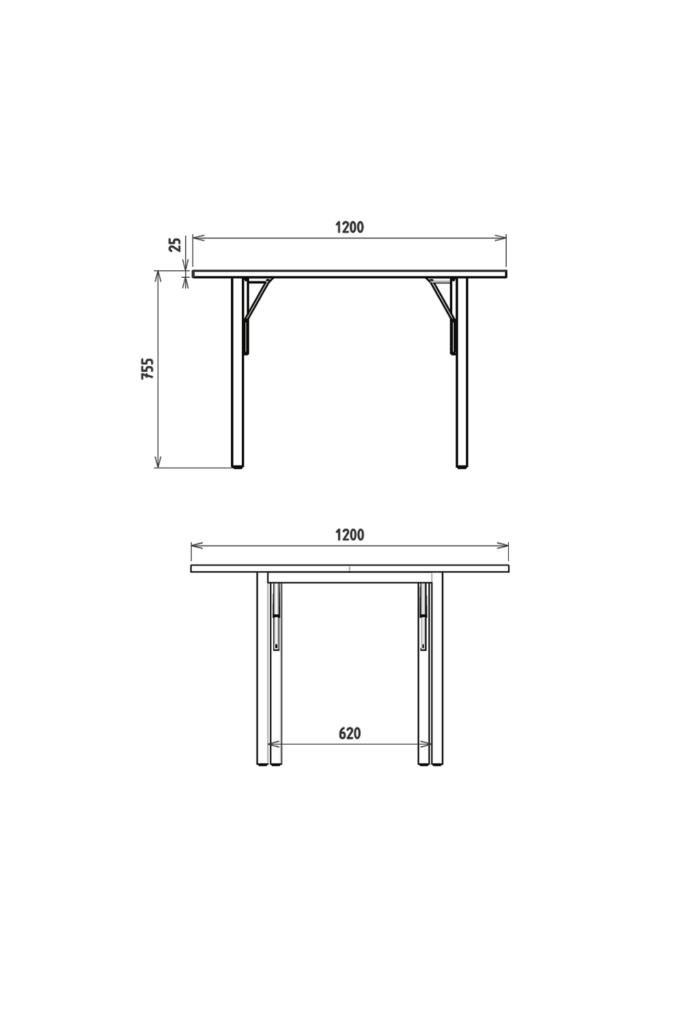 • Mesa retangular 1200 x 1200 x 740mm, com tampo de 25mm, bordas (todo perímetro) em perfil de PVC . Estrutura metálica em tubo 40 x 40mm com sistema escamoteavel