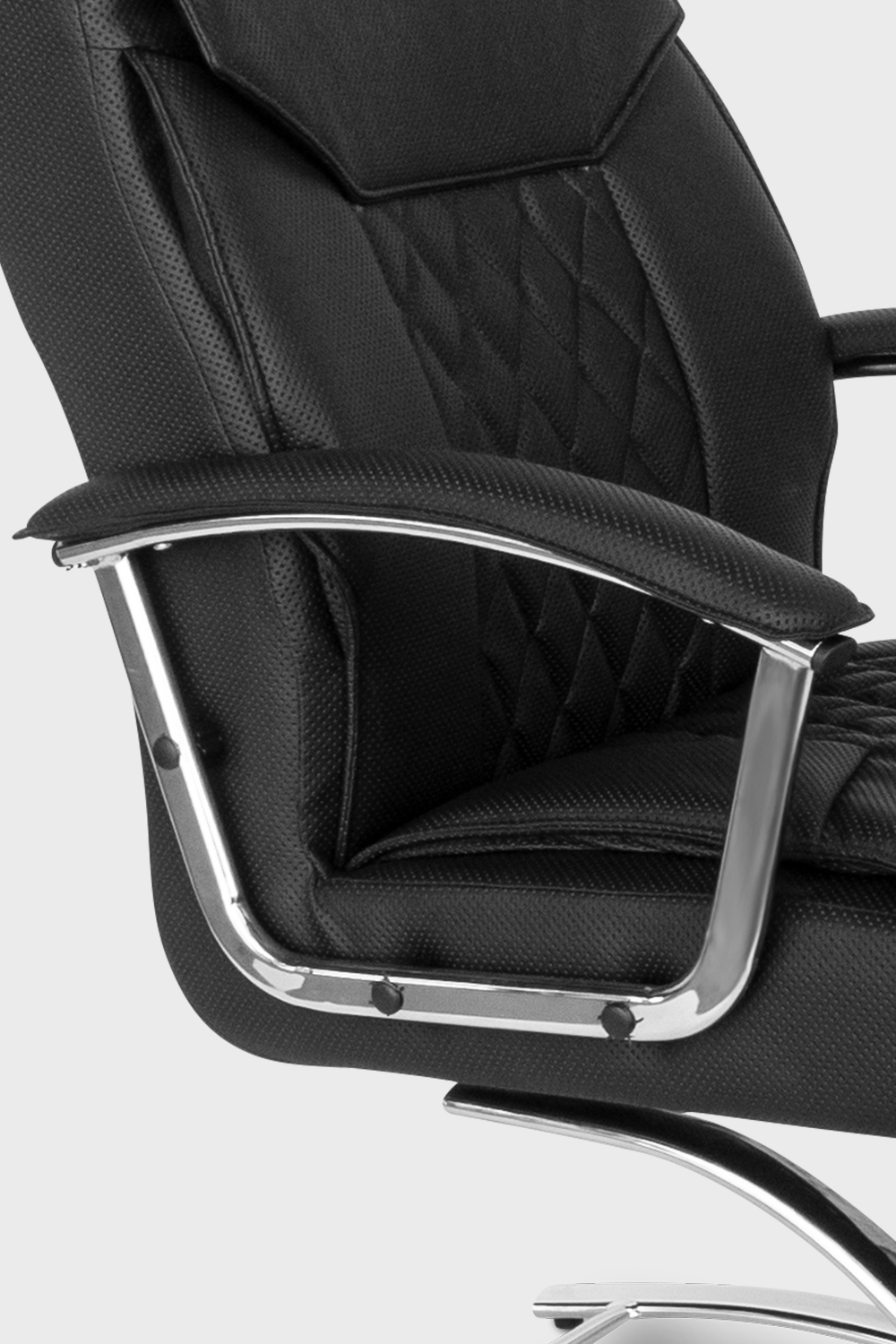 - Revestimento de assento e encosto em couro ecológico com costura quadriculada, com faixa interna de tecido feltro impregnado em infravermelho prolongado e íons para fins terapêuticos.
