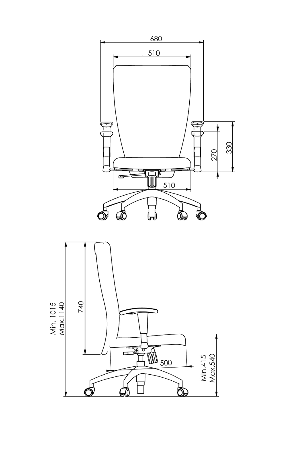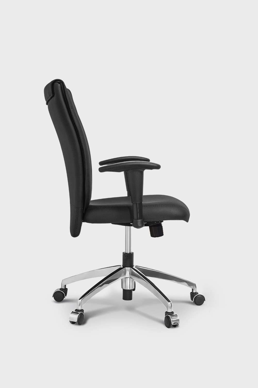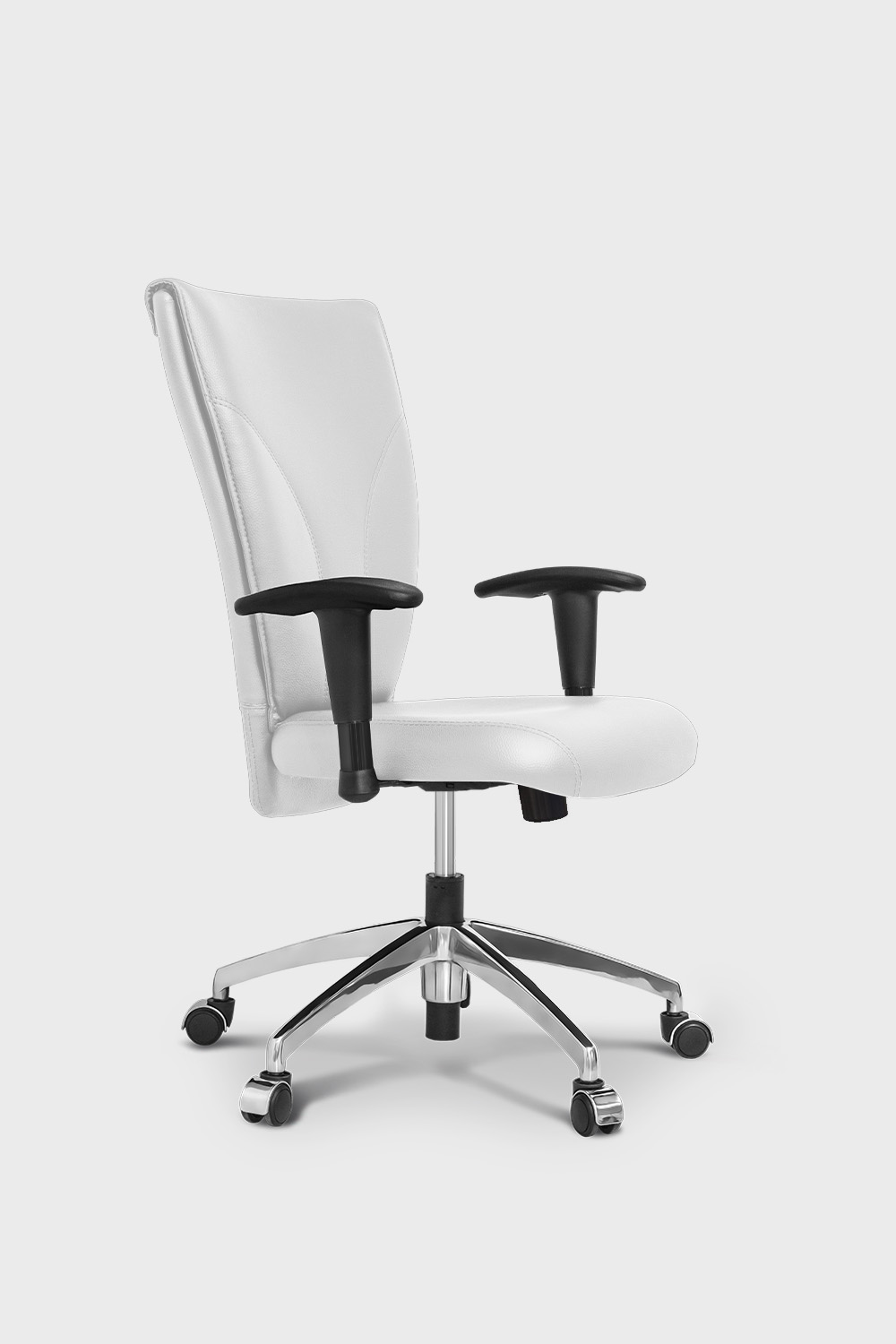 • Braço regulável tipo “T” com acabamento cromado e apoio em PU.
