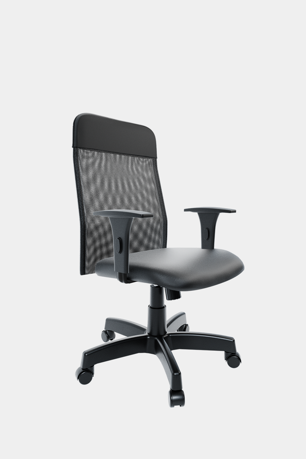- Encosto médio com estrutura metálica em aço tubular, revestido em tela de poliéster;