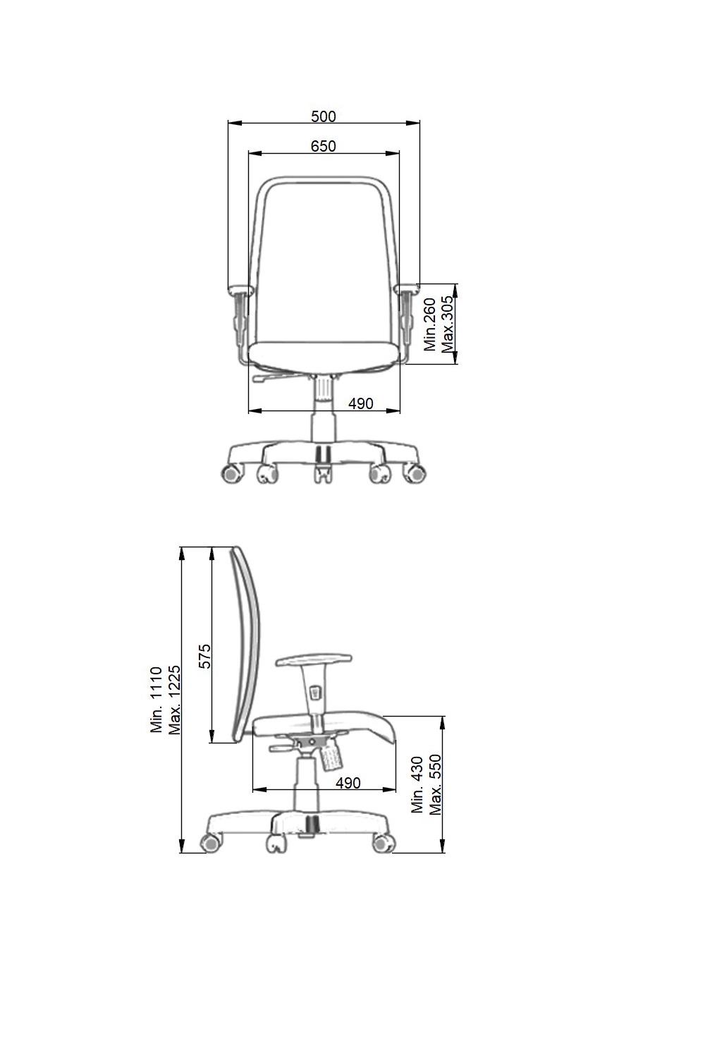 - Braço regulável tipo “T” com apoio em PP.