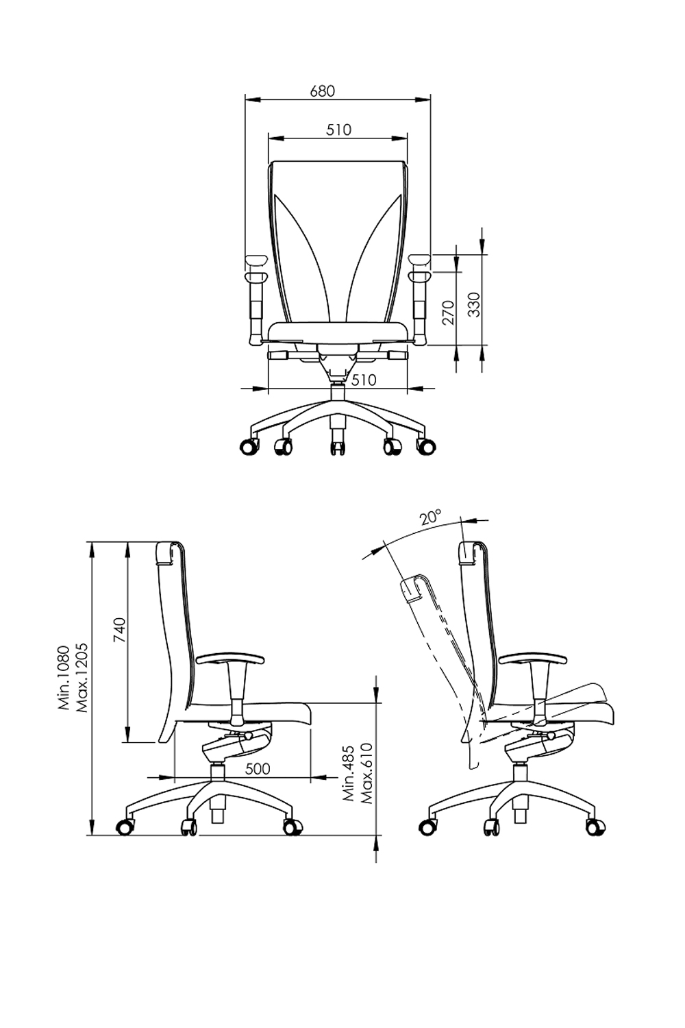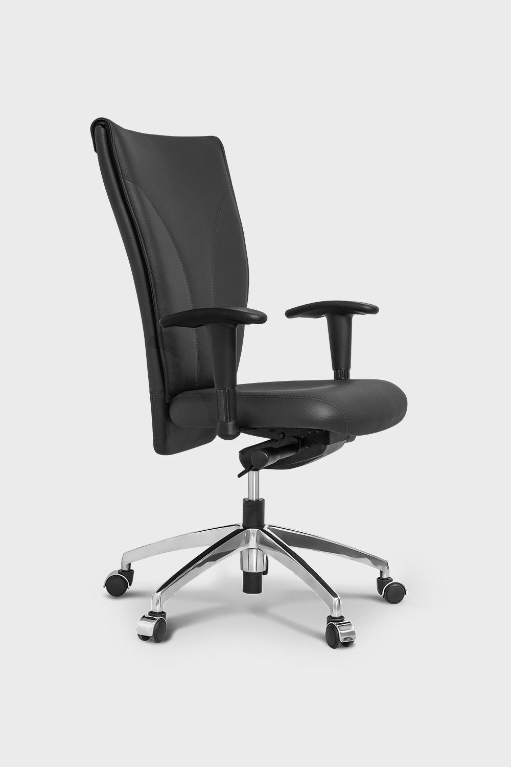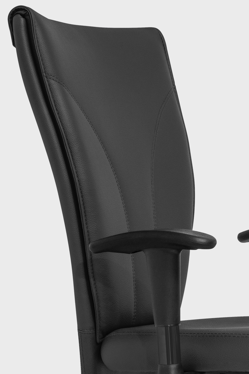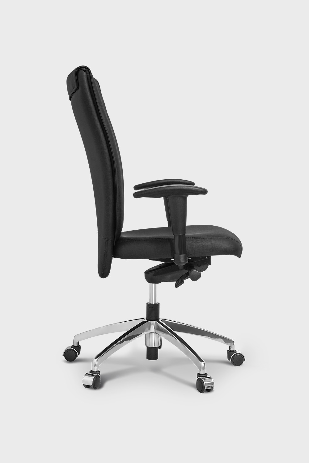 - Encosto alto tipo “fraque” em madeira, estofado em espuma laminada D26;