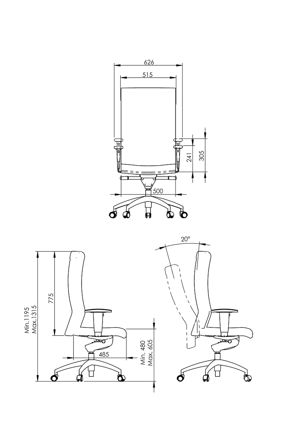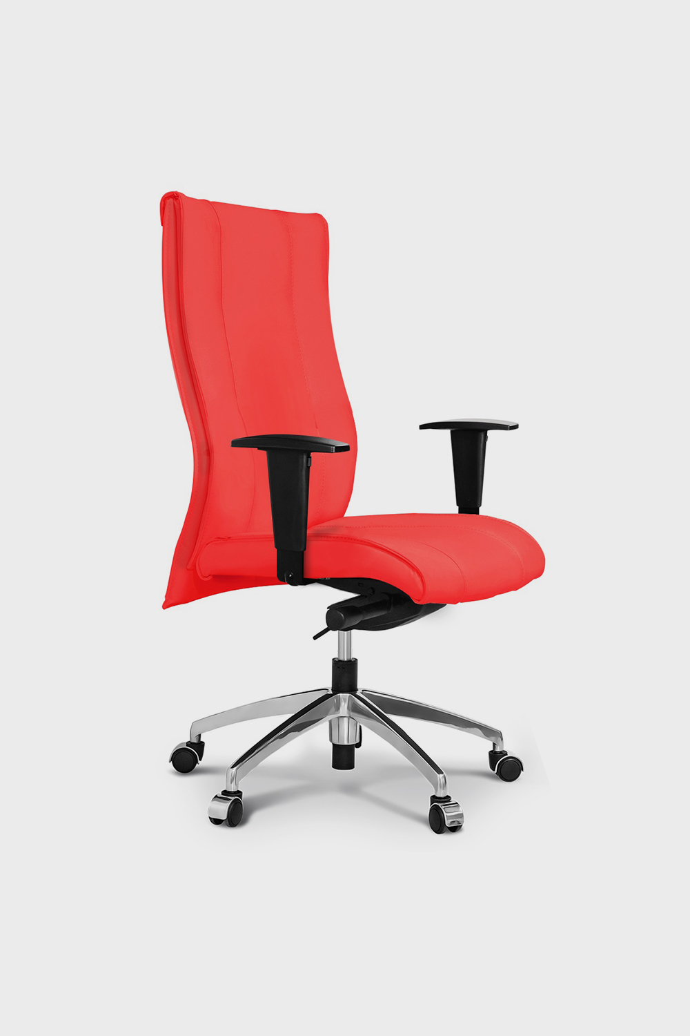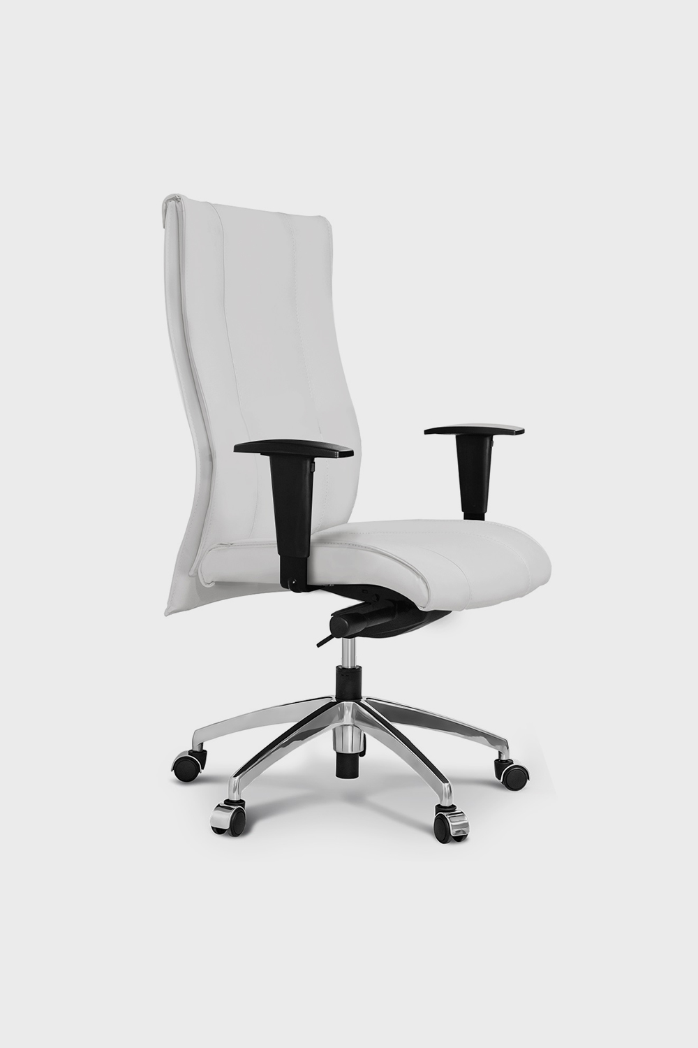 - Encosto alto tipo “fraque” em madeira, estofado em espuma laminada D26.