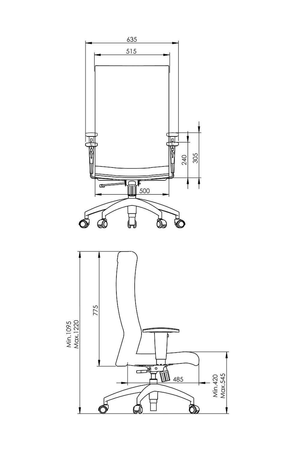 - Braço regulável tipo “T” com apoio em PU.
