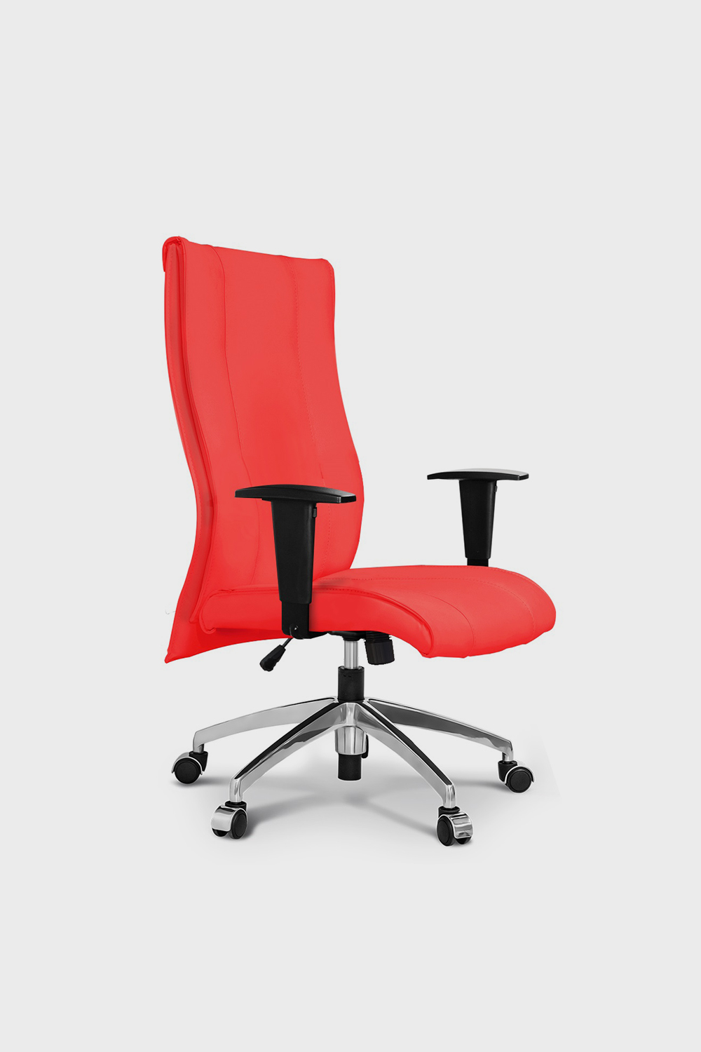 - Encosto alto tipo “fraque” em madeira, estofado em espuma laminada D26.
