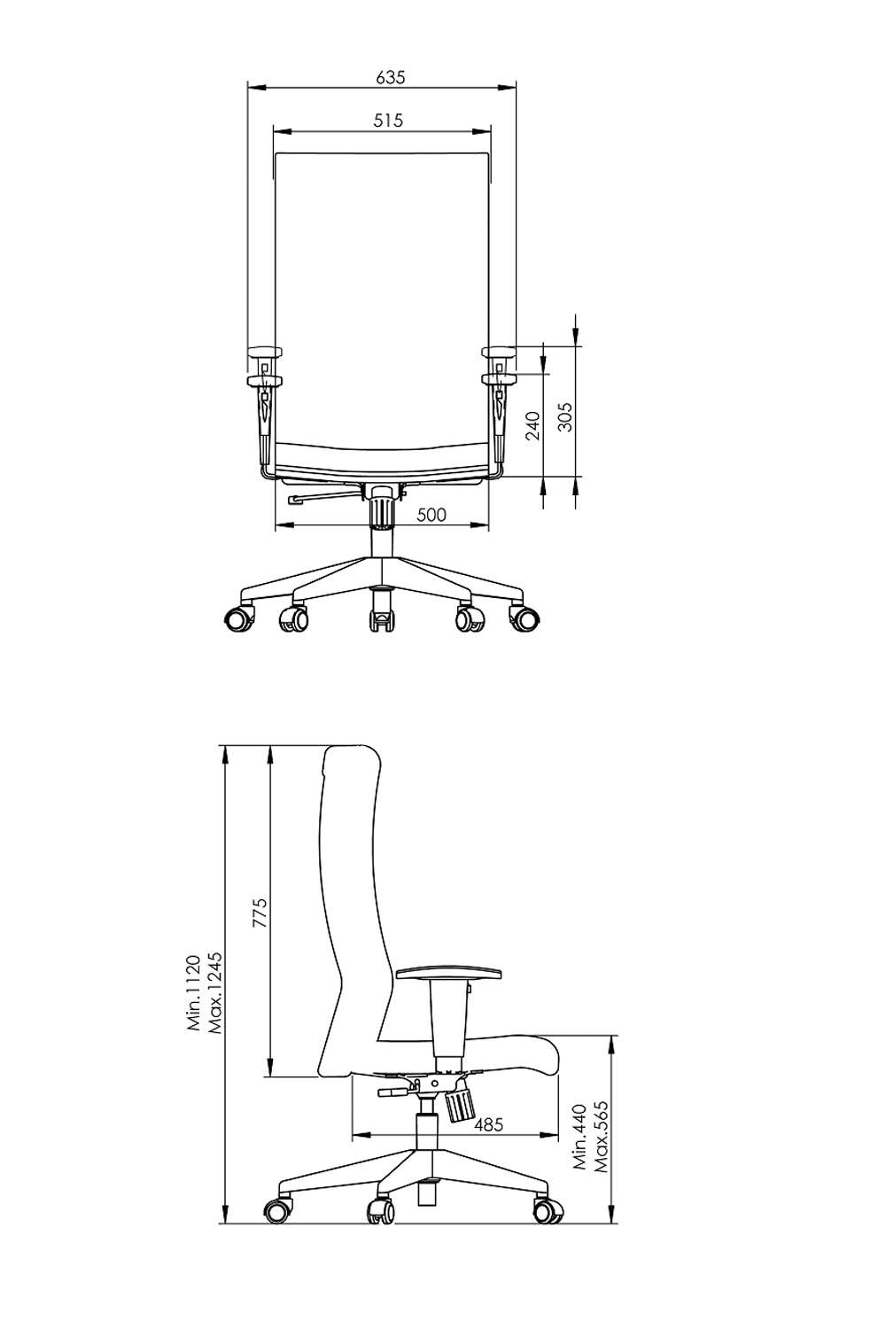 - Base giratória em poliamida na cor preta com rodízio PP.