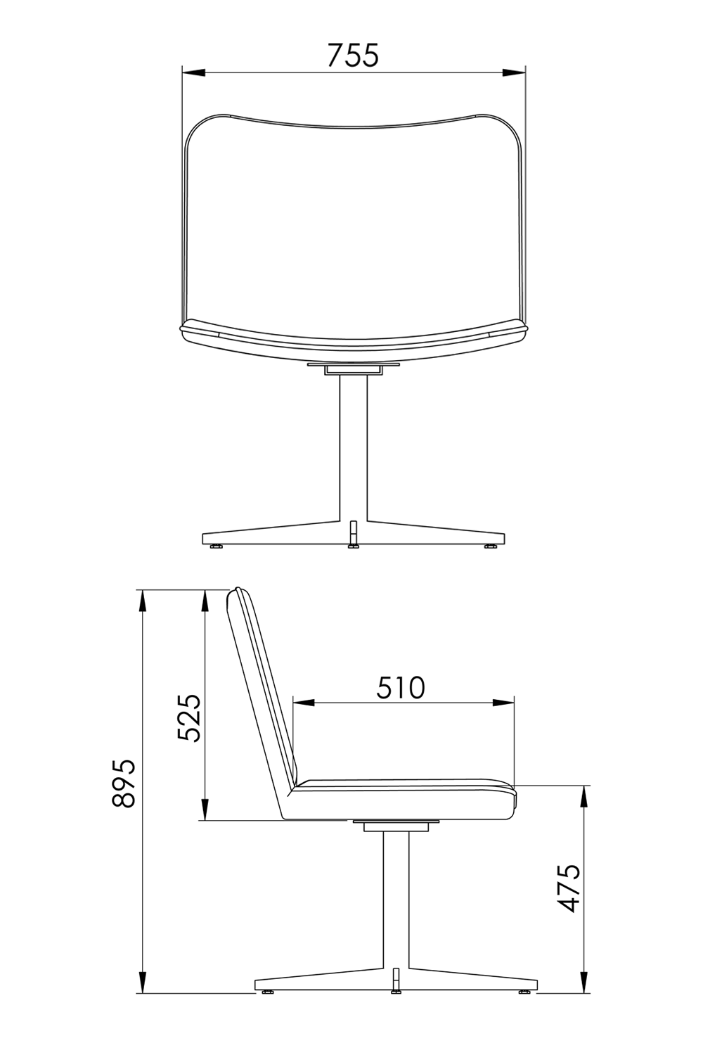 - Encosto com espaldar alto em madeira, com estofado em espuma laminada D26;