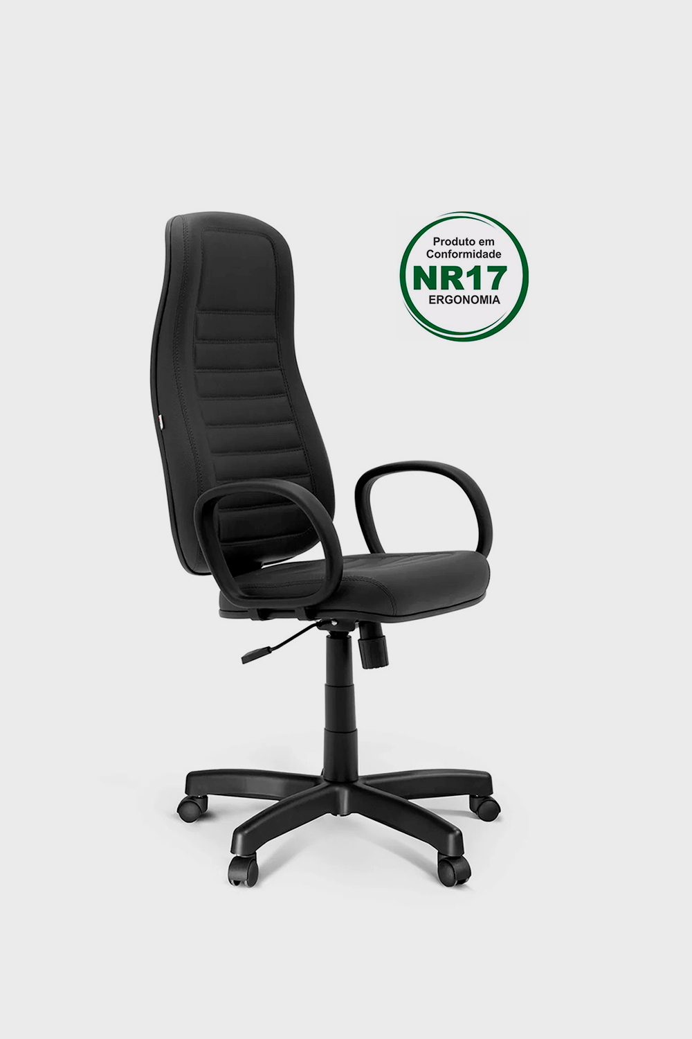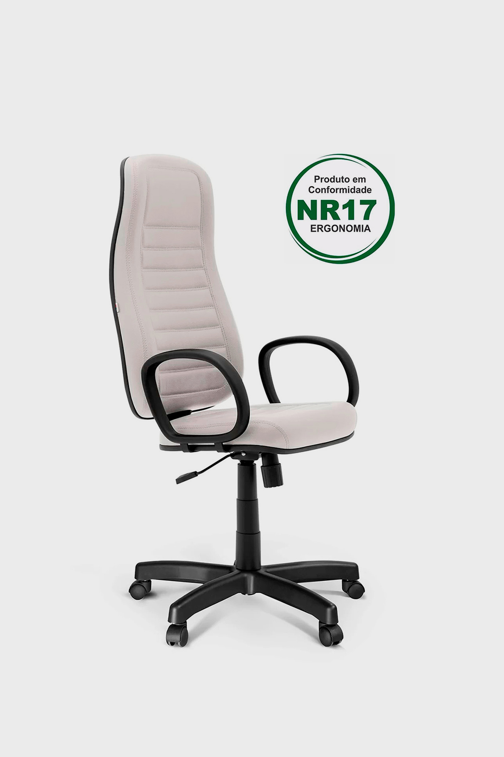 - Encosto alto em madeira, estofado em espuma injetada D45;