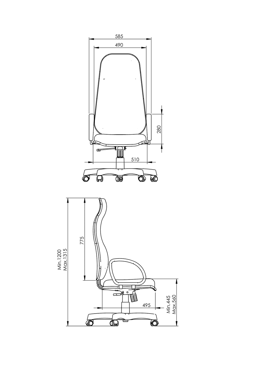 - Base giratória em aço com capa de proteção com rodízio PP.
